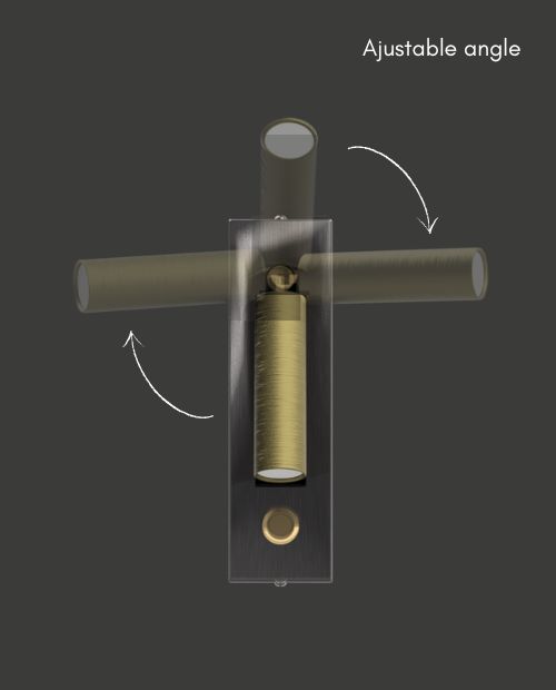 A sleek and modern wall light designed with a brushed gold adjustable spotlight and a minimal rectangular base. Perfect for focused lighting in bedrooms, reading corners, or hallways. Its elegant design adds warmth and sophistication to any contemporary space.